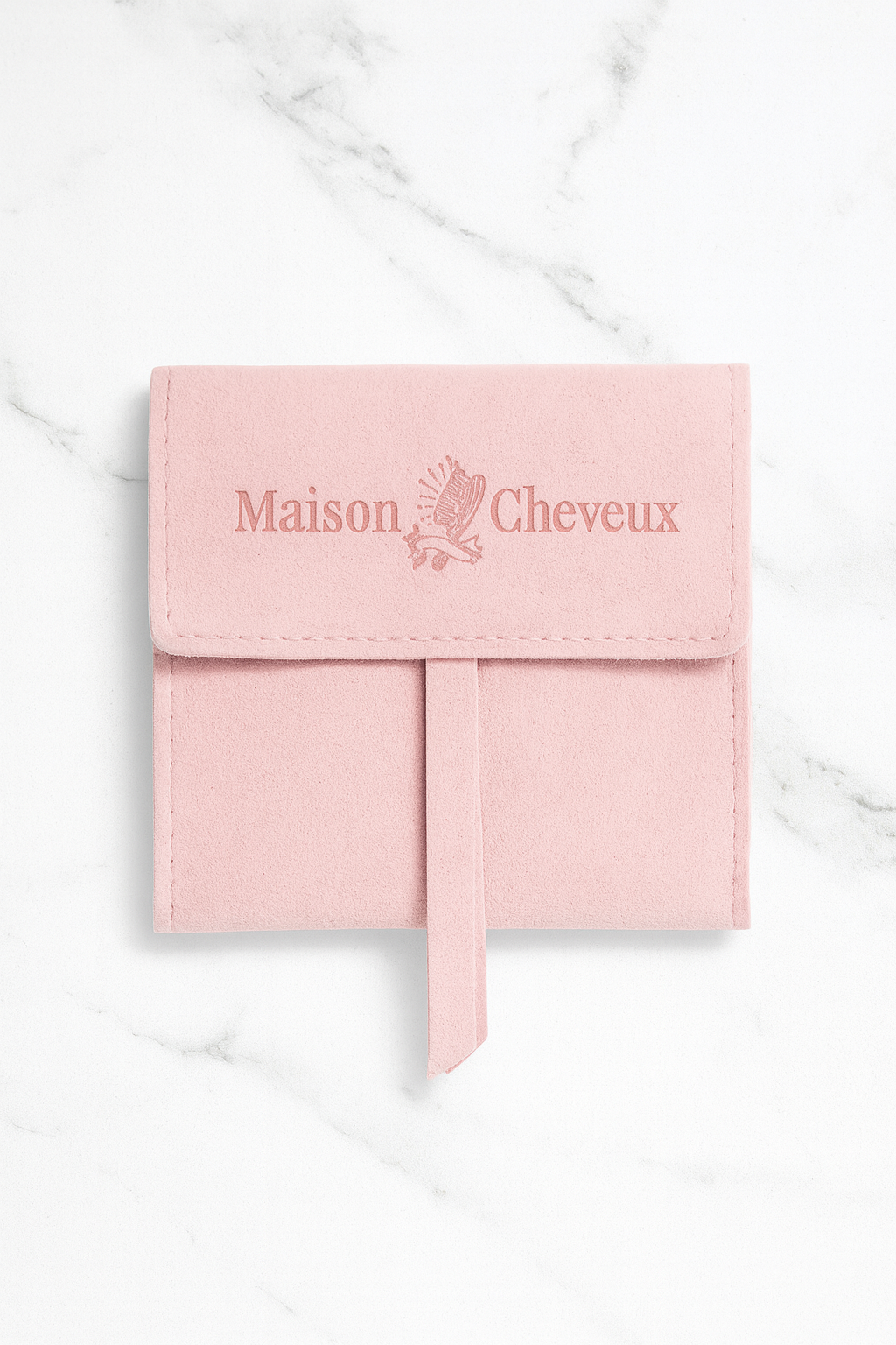 Every purchase at Maison Cheveux is accompanied by our signature pink suede pouch. This gift is our way of thanking you for choosing the Maison.