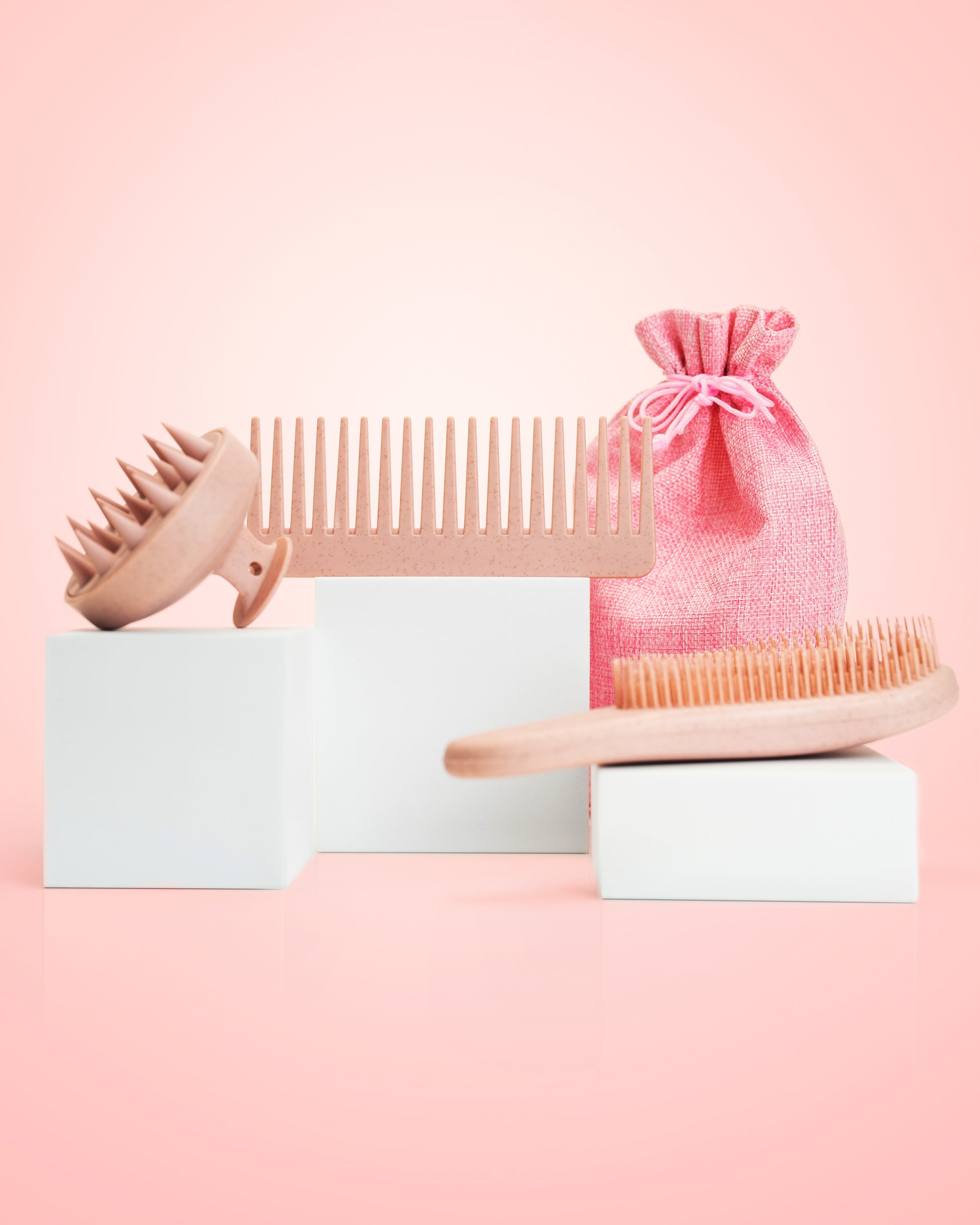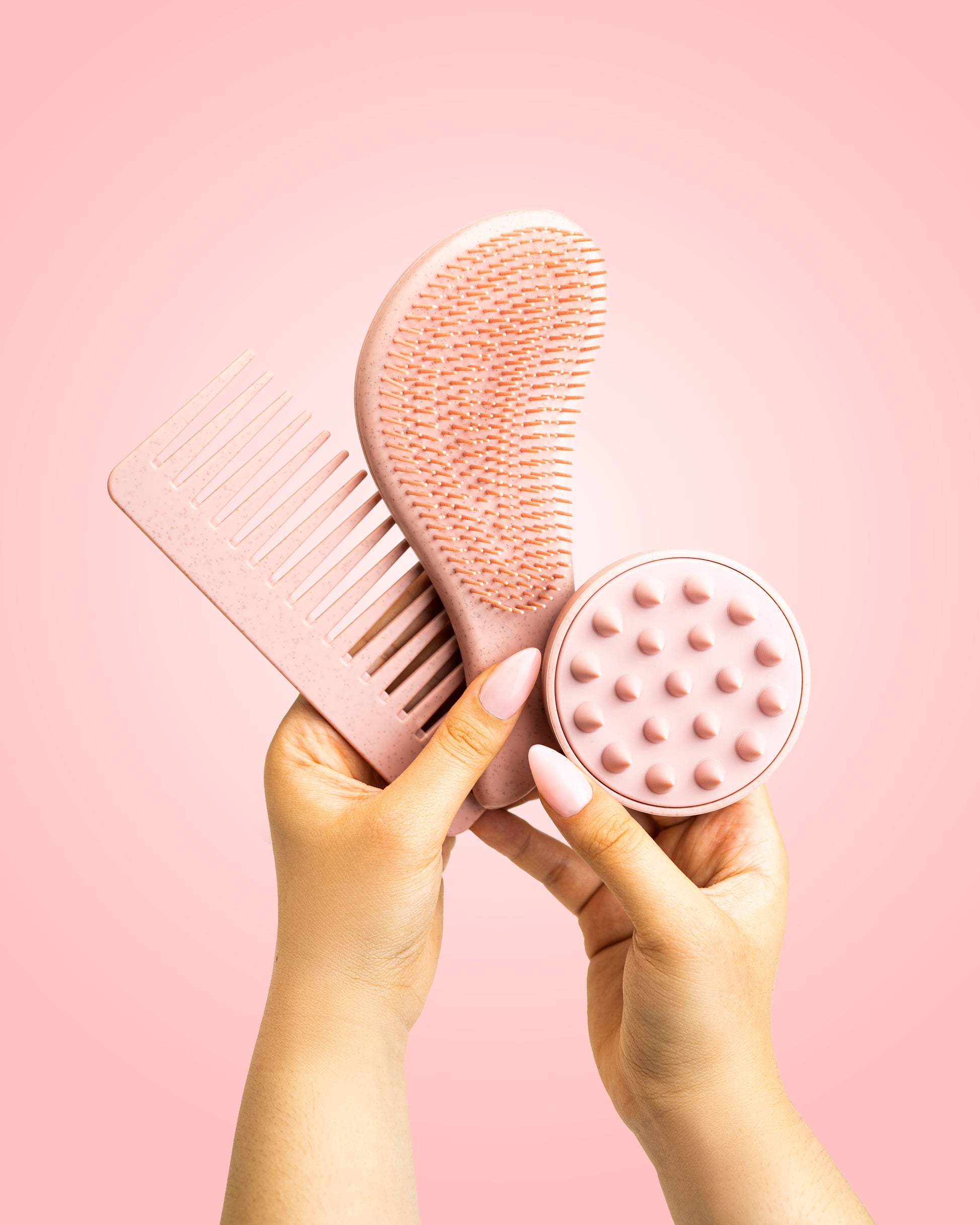 Absolutely! The silicone scalp brush features soft, flexible bristles that cleanse and stimulate without scratching or irritating. We always recommend using gentle pressure and pairing with your favourite soothing scalp oil or serum for added comfort. Also, both the wide-tooth comb and hair brush are designed to be gentle on sensitive scalps. The comb’s smooth, rounded teeth glide through hair without pulling or scratching, making it ideal for detangling wet or dry strands. The hair brush features flexible bristles that cushion the scalp on contact, reducing friction and minimizing irritation during daily styling. Together, they help prevent breakage while keeping your scalp calm and comfortable.