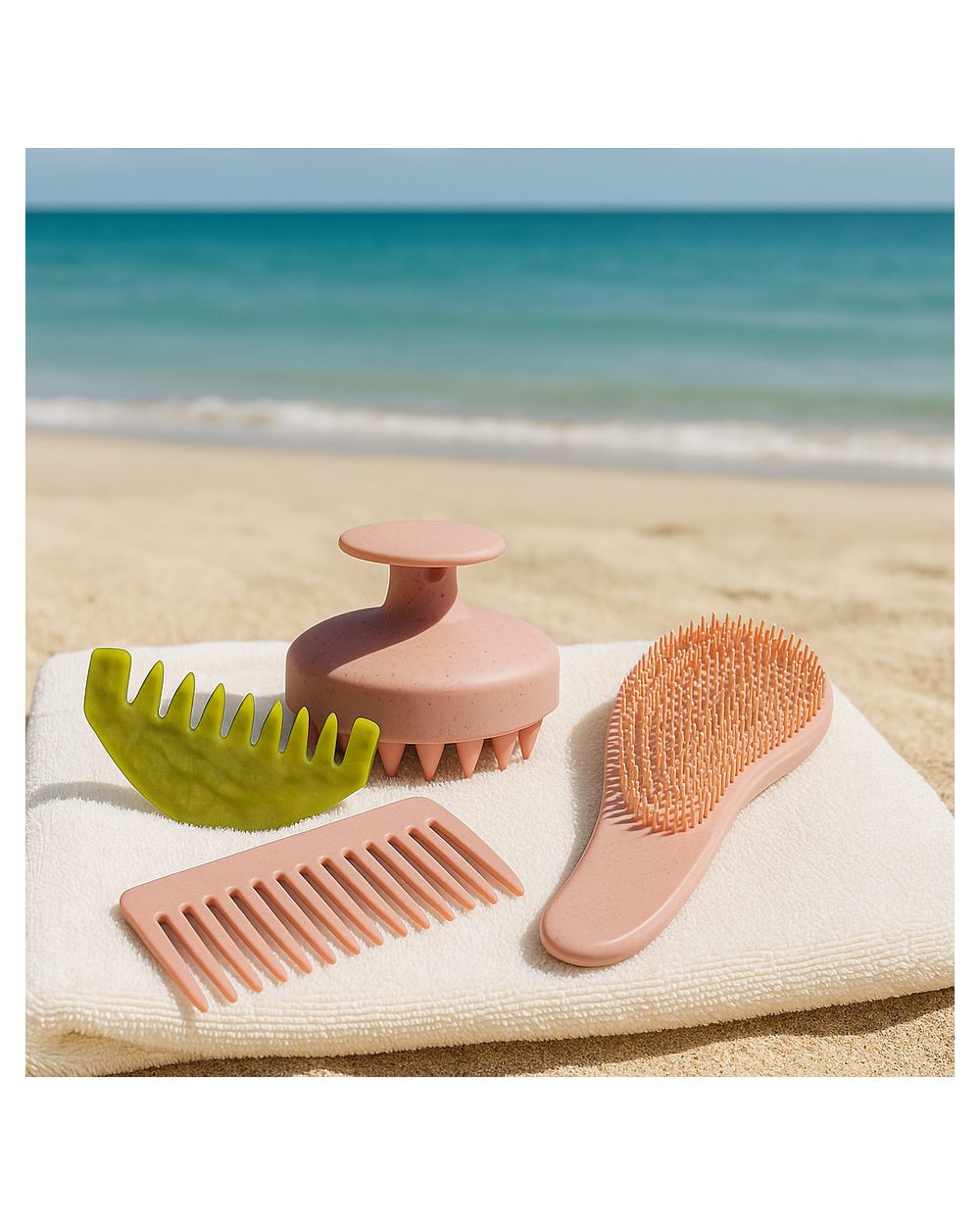 The Summer Kit has completely transformed my holiday routine. The scalp brush is so soothing after a day in the sun, and the wide-tooth comb makes detangling effortless. It feels like a little ritual of care every evening.